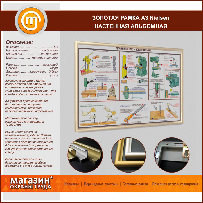 Багетная настенная рамка «Nielsen» А3 формата, альбомная, матовое золото в Череповце купить