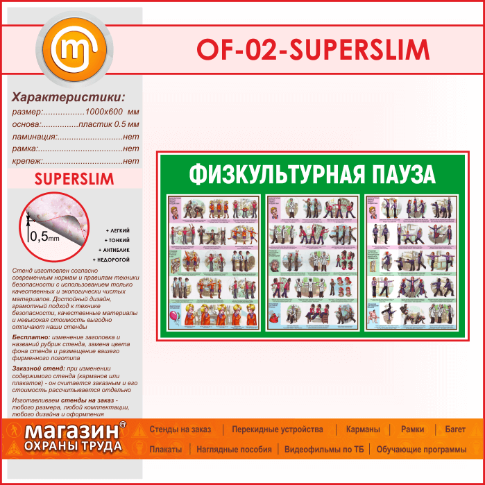 Стенд «Физкультурная пауза» (OF-02-SUPERSLIM) в Череповце купить