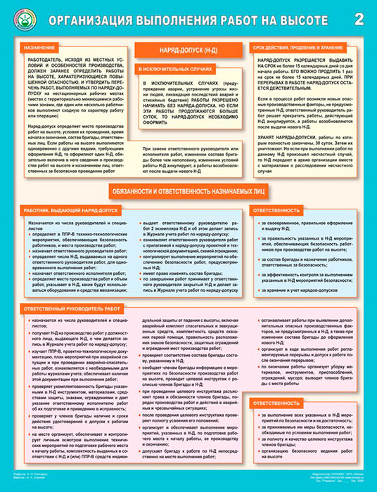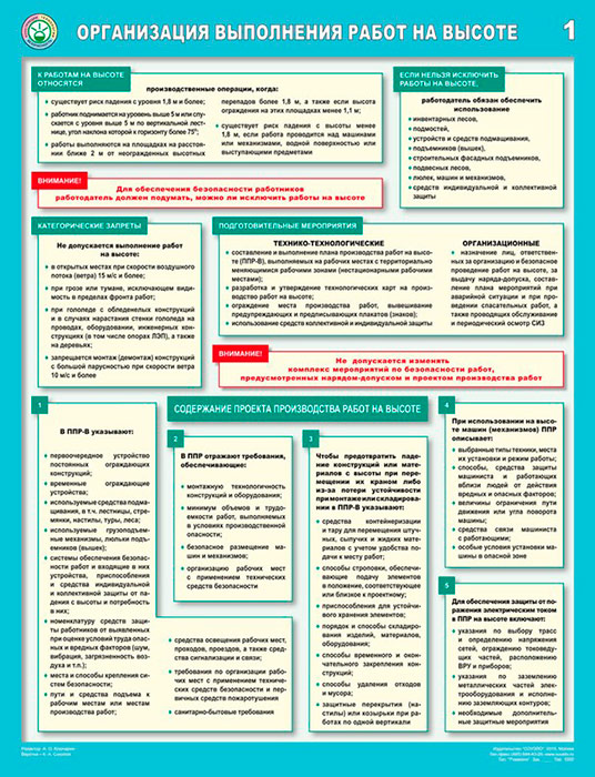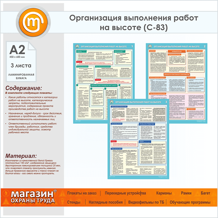 Плакаты «Организация выполнения работ на высоте» (С-83, ламинированная бумага, А2, 3 листа) в Череповце купить