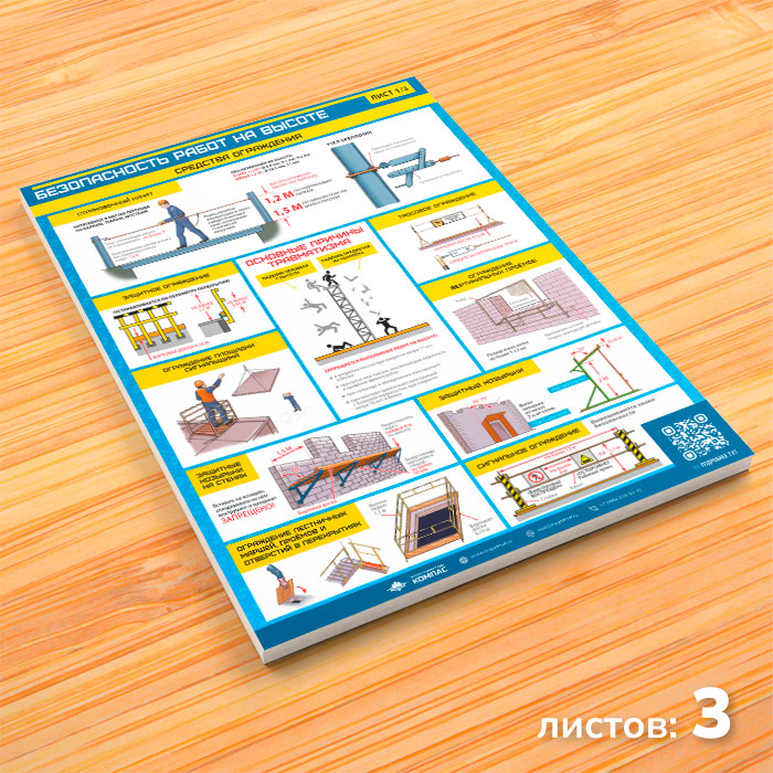 Плакаты «Безопасность работ на высоте» (М-52, ламинированная бумага, А2, 3 листа) в Череповце купить