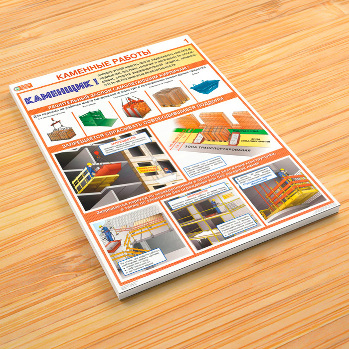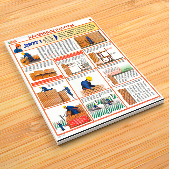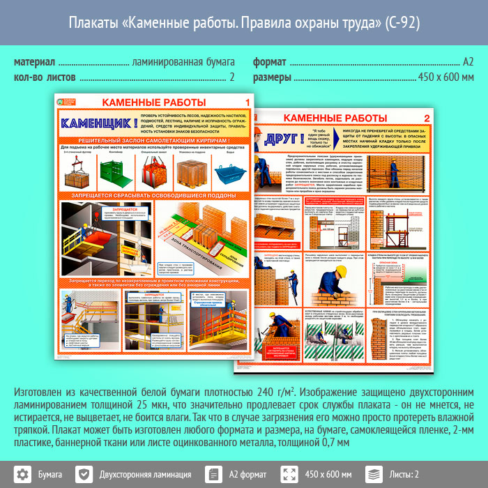 Плакаты «Каменные работы. Правила охраны труда» (С-92, ламинированная бумага, А2, 2 листа) в Череповце купить