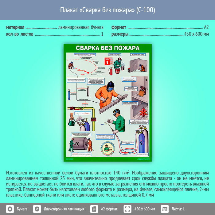 Плакат «Сварка без пожара» (С-100, ламинированная бумага, А2, 1 лист) в Череповце купить