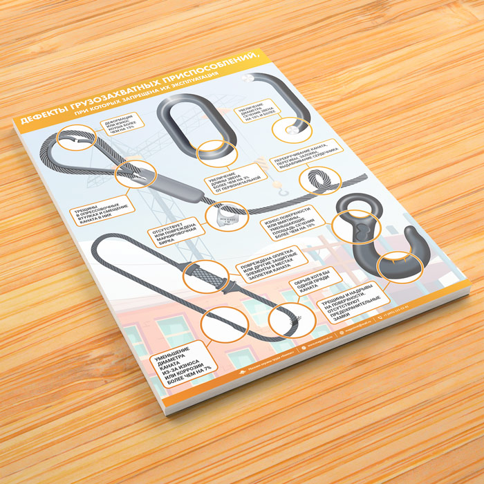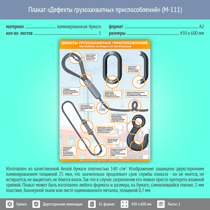 Плакат «Дефекты грузозахватных приспособлений» (М-111, ламинированная бумага, А2, 1 лист) в Череповце купить