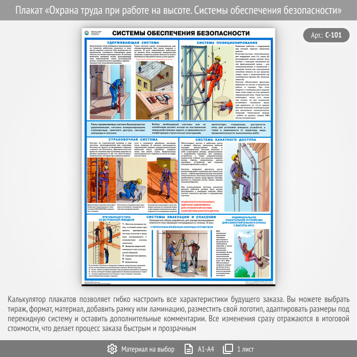 Плакат «Охрана труда при работе на высоте. Системы обеспечения безопасности» (С-101, 1 листа) в Череповце купить
