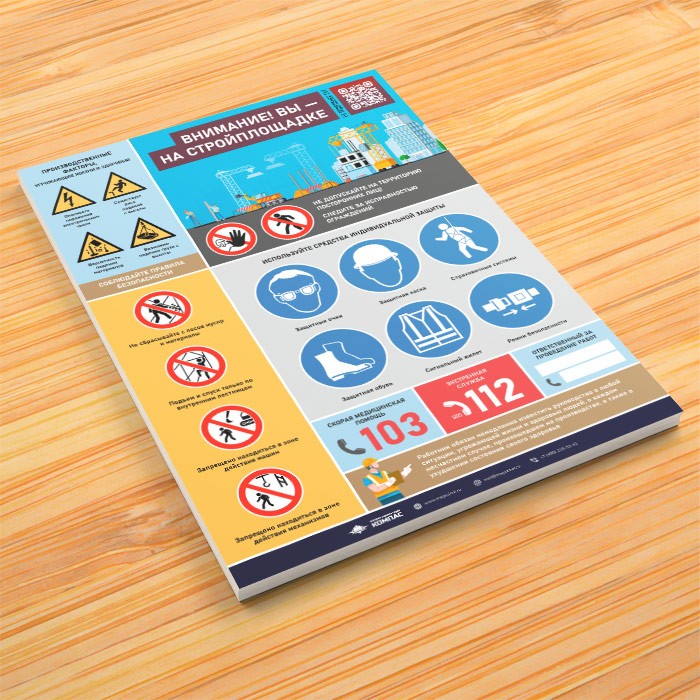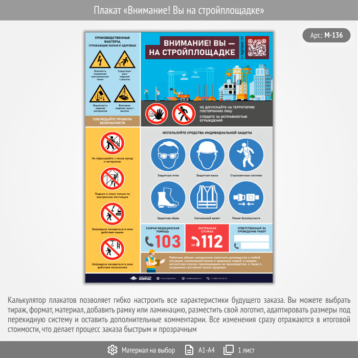 Плакат «Внимание! Вы на стройплощадке» с QR (М-136, 1 лист) в Череповце купить