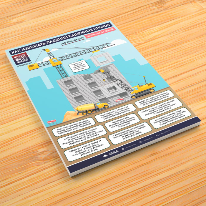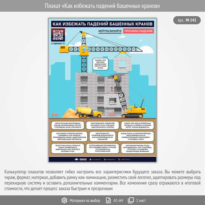 Плакат «Как избежать падений башенных кранов» с QR (М-141, 1 лист) в Череповце купить