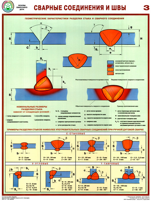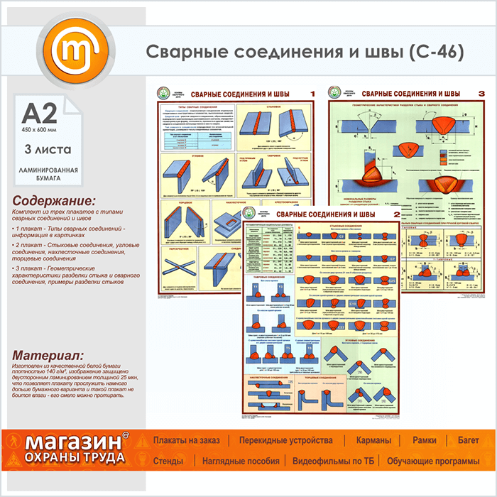 Плакаты «Сварные соединения и швы» (С-46, ламинированная бумага, А2, 3 листа) в Череповце купить