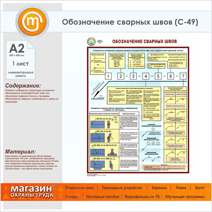 Плакат «Обозначение сварных швов» (С-49, ламинированная бумага, А2, 1 лист) в Череповце купить