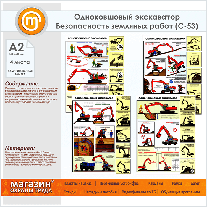 Плакаты «Одноковшовый экскаватор. Безопасность земляных работ» (С-53, ламинированная бумага, А2, 4 листа) в Череповце купить