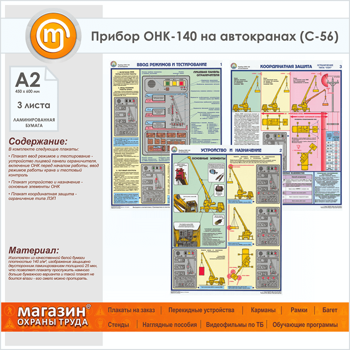 Плакаты «Прибор ОНК-140 на автокранах» (С-56, ламинированная бумага, А2, 3 листа) в Череповце купить