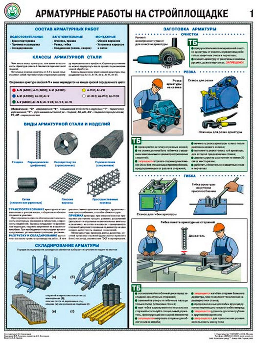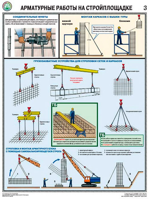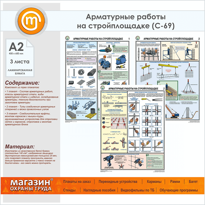 Плакаты «Арматурные работы на стройплощадке» (С-69, ламинированная бумага, А2, 3 листа) в Череповце купить