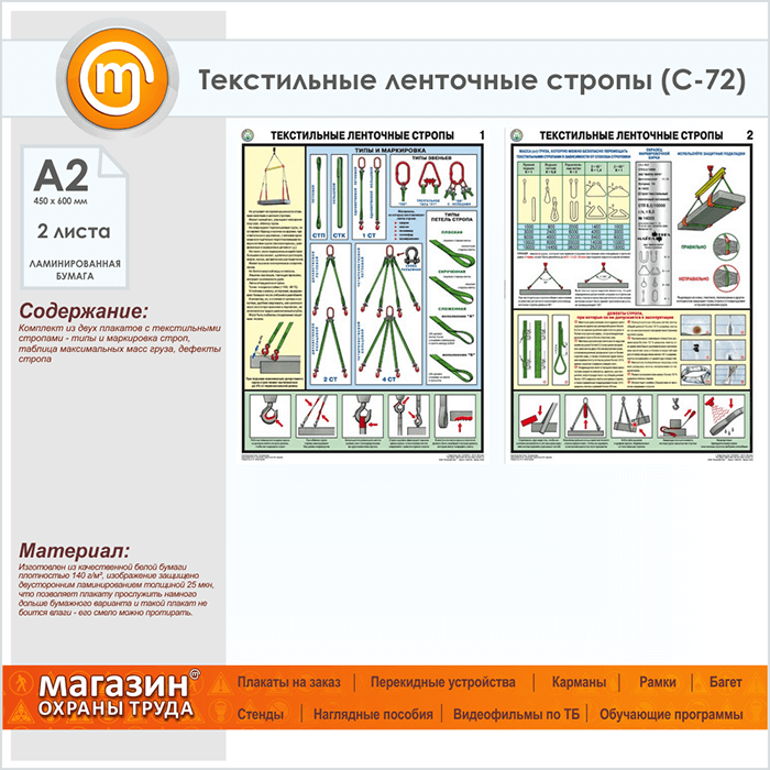 Плакаты «Текстильные ленточные стропы» (С-72, ламинированная бумага, А2, 2 листа) в Череповце купить