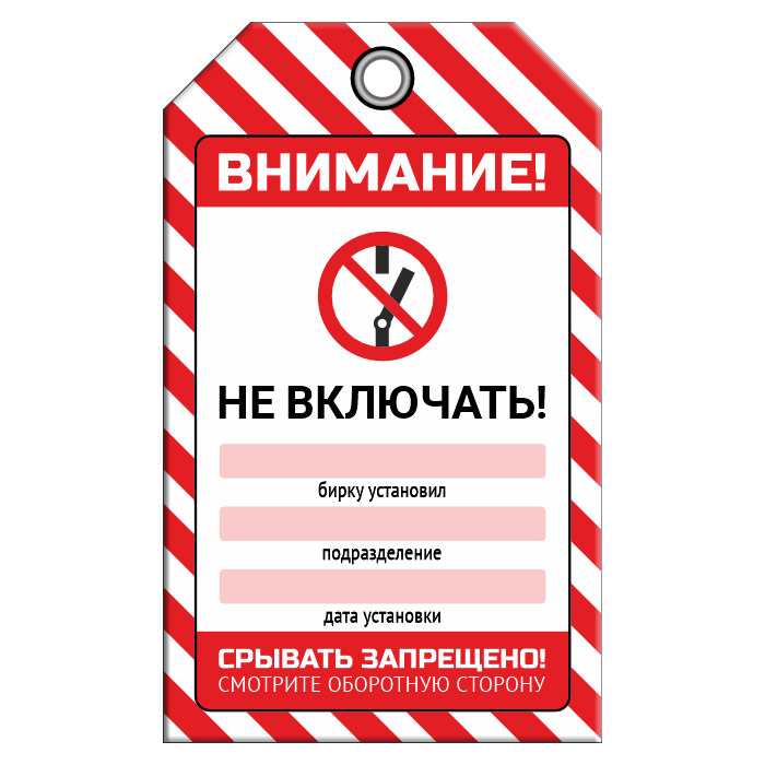 Бирка «НЕ ВКЛЮЧАТЬ!» (1 шт., двусторонняя, пластик, 70х115 мм) в Череповце купить