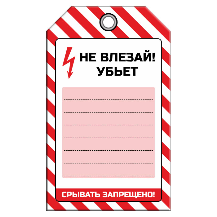 Бирка «НЕ ВЛЕЗАЙ! УБЪЕТ» (1 шт., односторонняя, пластик, 70х115 мм) в Череповце купить