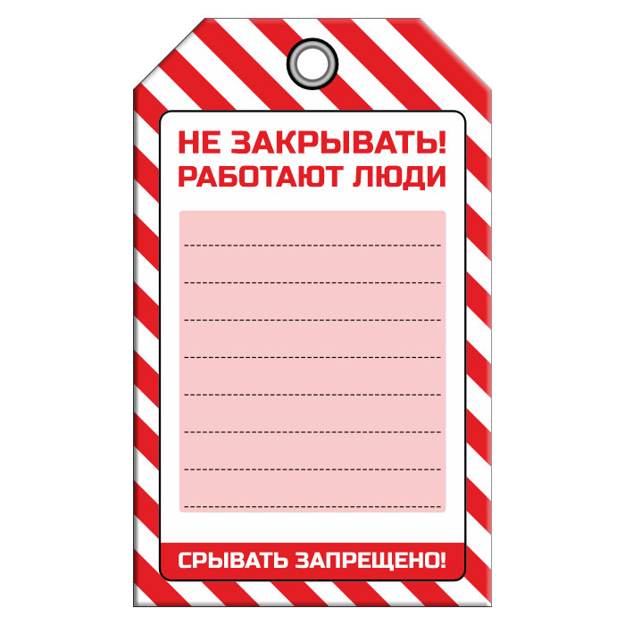 Бирка «НЕ ЗАКРЫВАТЬ! РАБОТАЮТ ЛЮДИ» (1 шт., односторонняя, пластик, 70х115 мм) в Череповце купить