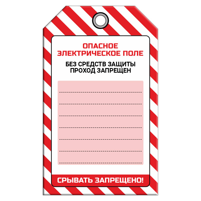 Бирка «ОПАСНОЕ ЭЛЕКТРИЧЕСКОЕ ПОЛЕ» (1 шт., односторонняя, пластик, 70х115 мм) в Череповце купить
