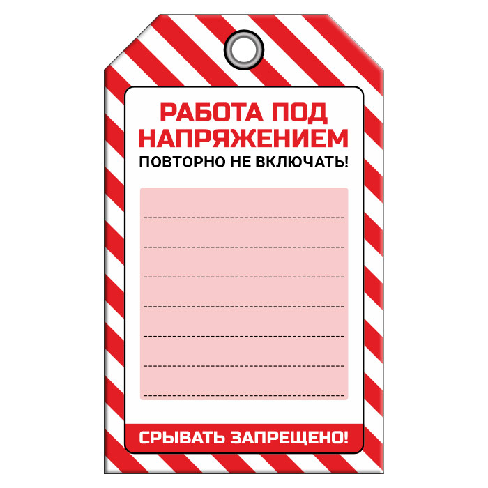Бирка «РАБОТА ПОД НАПРЯЖЕНИЕМ» (1 шт., односторонняя, пластик, 70х115 мм) в Череповце купить