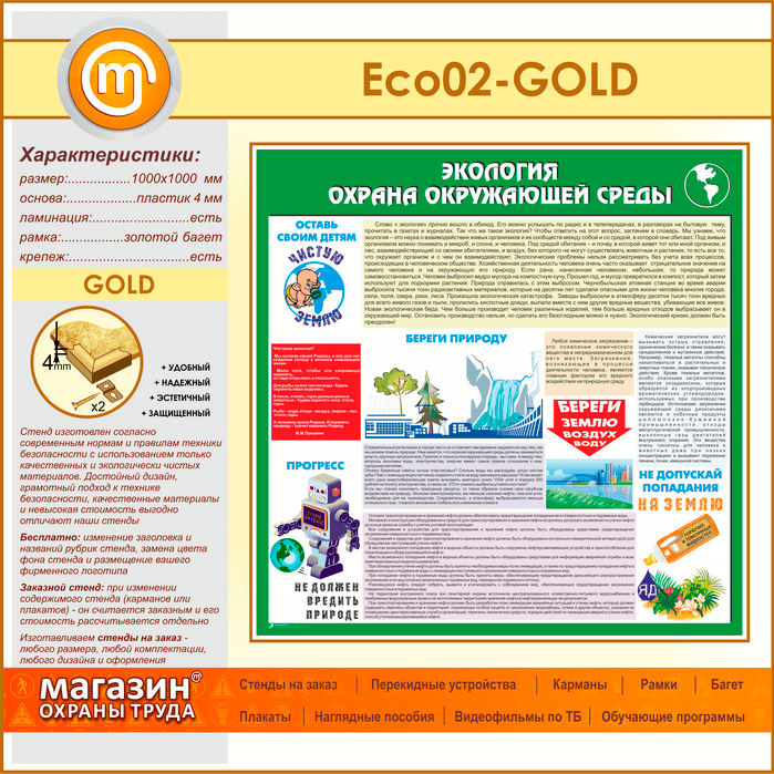 Стенд «Экология - Охрана окружающей среды» (ECO-02-GOLD) в Череповце купить