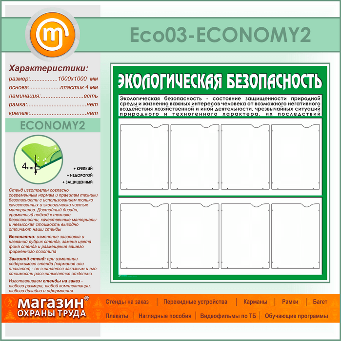 Стенд «Экологическая безопасность» с 8 карманами (ECO-03-ECONOMY2) в Череповце купить