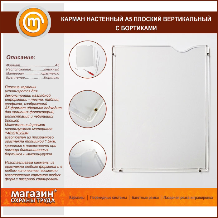 Карман настенный А5 плоский вертикальный с бортиками в Череповце купить