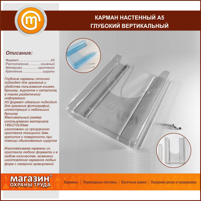 Карман настенный А5 объемный вертикальный в Череповце купить