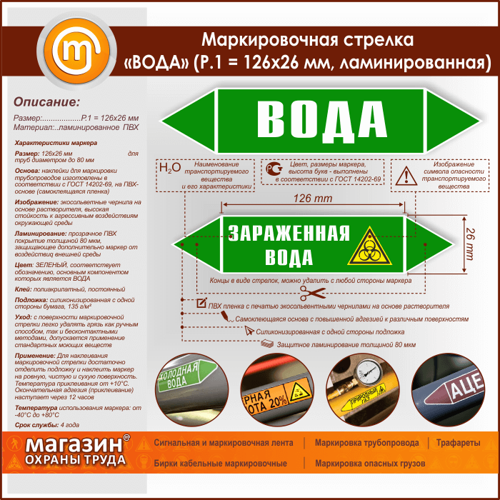 Маркировочная стрелка «ВОДА» (P.1 = 126х26 мм, самоклеящаяся плёнка с ламинированием) в Череповце купить