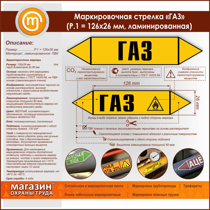 Маркировочная стрелка «ГАЗ» (Р.1 = 126х26 мм, самоклеящаяся плёнка с ламинированием) в Череповце купить
