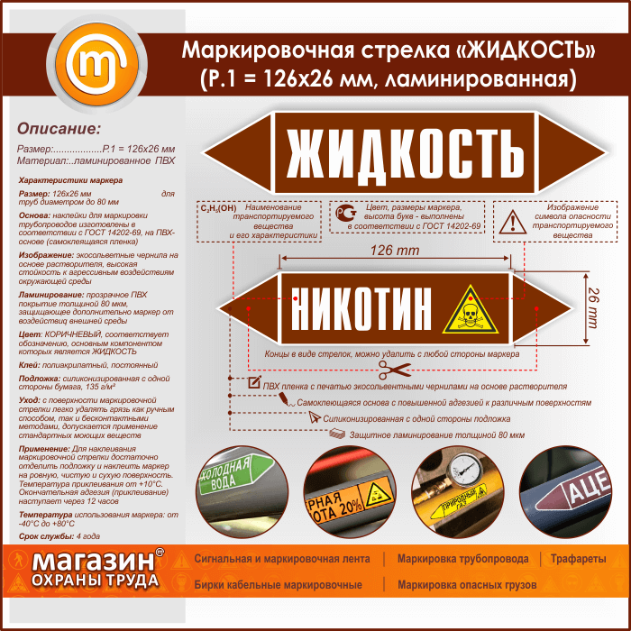 Маркировочная стрелка «ЖИДКОСТЬ» (Р.1 = 126х26 мм, самоклеящаяся плёнка с ламинированием) в Череповце купить
