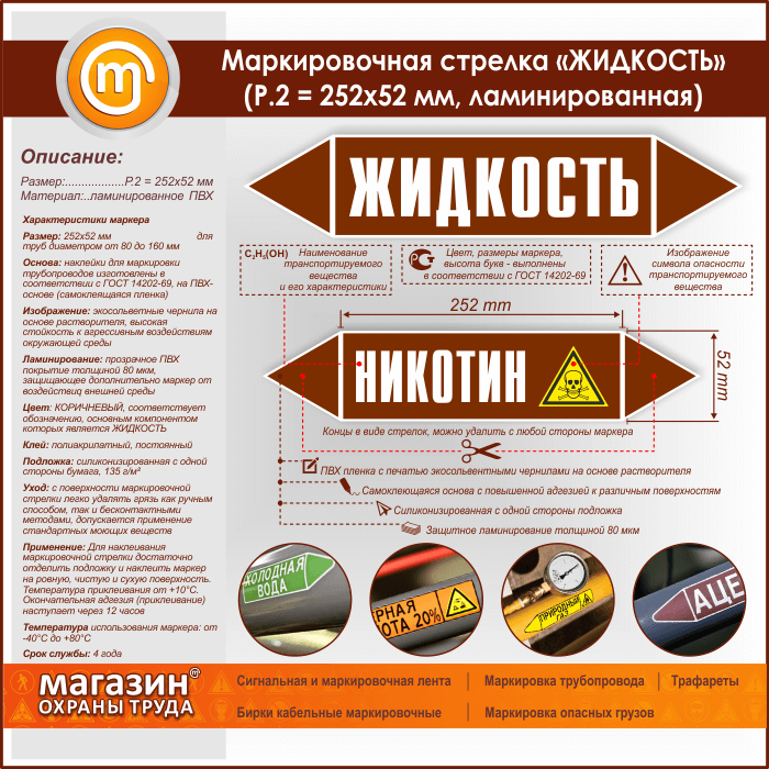 Маркировочная стрелка «ЖИДКОСТЬ» (P.2 = 252х52 мм, самоклеящаяся плёнка с ламинированием) в Череповце купить