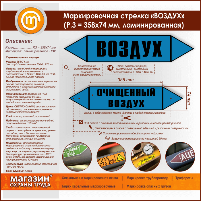 Маркировочная стрелка «ВОЗДУХ» (P.3 = 358х74 мм, самоклеящаяся плёнка с ламинированием) в Череповце купить