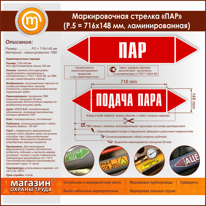 Маркировочная стрелка «ПАР» (P.5 = 716х148 мм, самоклеящаяся плёнка с ламинированием) в Череповце купить