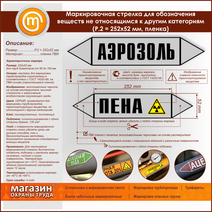 Маркировочная стрелка «ПРОЧИЕ ВЕЩЕСТВА» (P.2 = 252х52 мм, самоклеящаяся плёнка) в Череповце купить