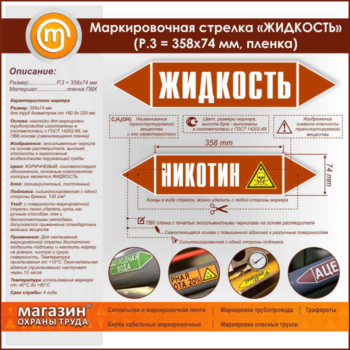 Маркировочная стрелка «ЖИДКОСТЬ» (P.3 = 358х74 мм, самоклеящаяся плёнка) в Череповце купить