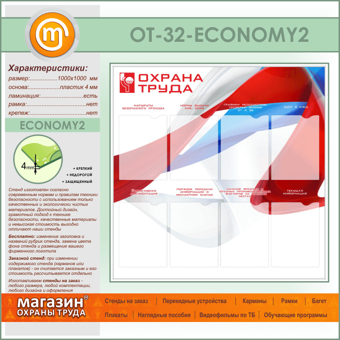 Стенд «Охрана труда» с 8 карманами (OT-32-ECONOMY2) в Череповце купить
