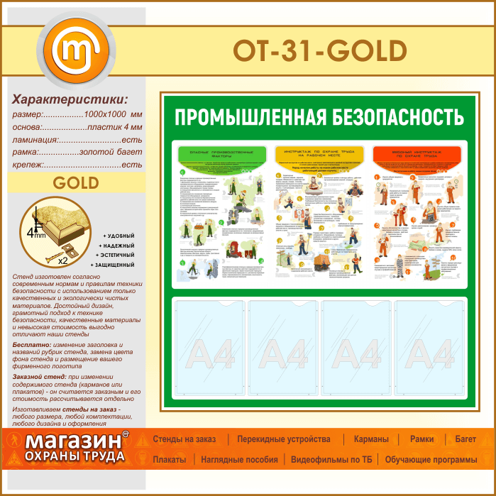 Стенд «Промышленная безопасность» с 4 карманами (OT-31-GOLD) в Череповце купить