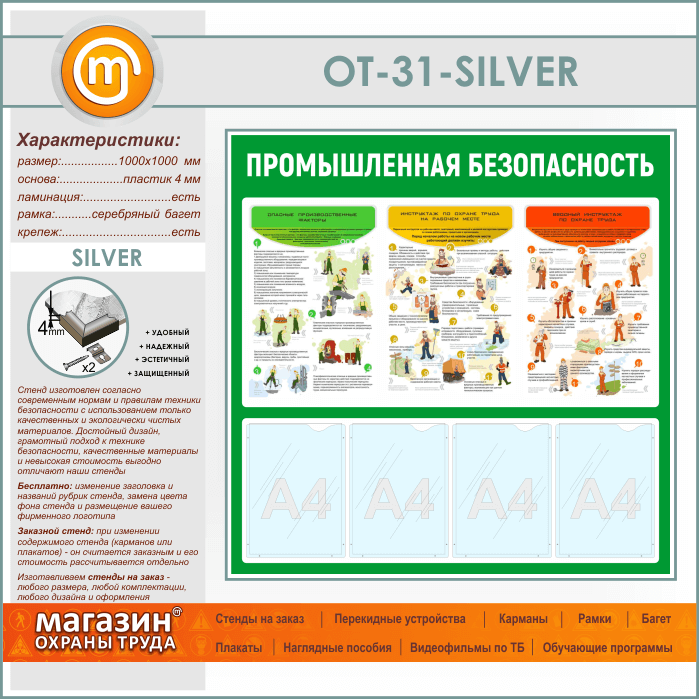 Стенд «Промышленная безопасность» с 4 карманами (OT-31-SILVER) в Череповце купить
