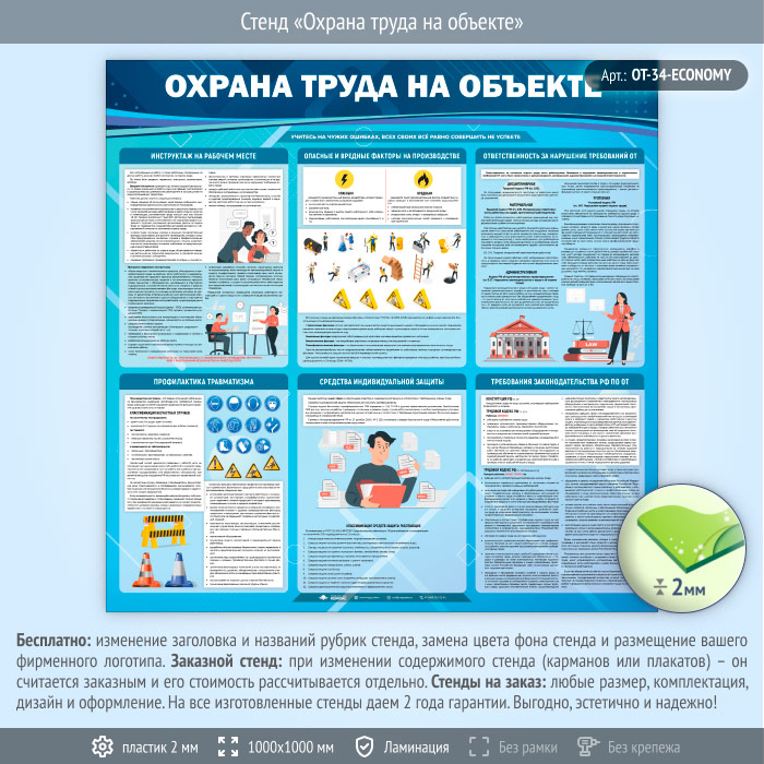 Стенд «Охрана труда на объекте» (OT-34-ECONOMY) в Череповце купить