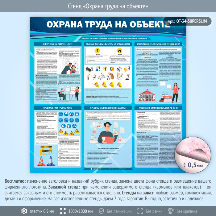Стенд «Охрана труда на объекте» (OT-34-SUPERSLIM) в Череповце купить