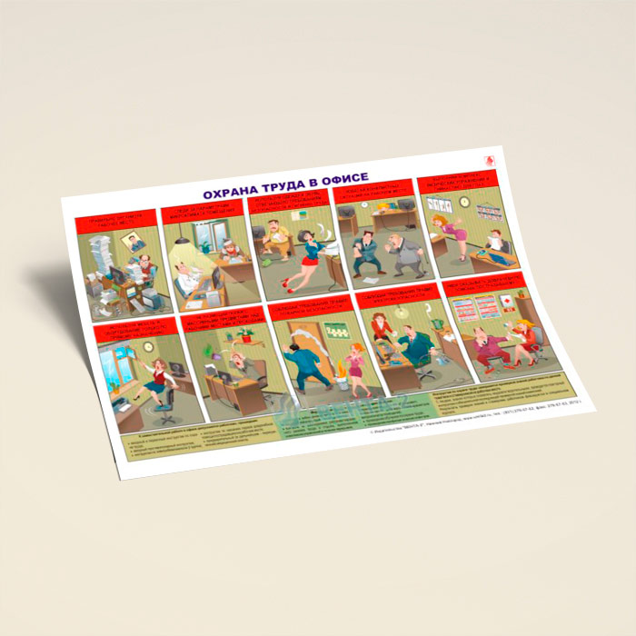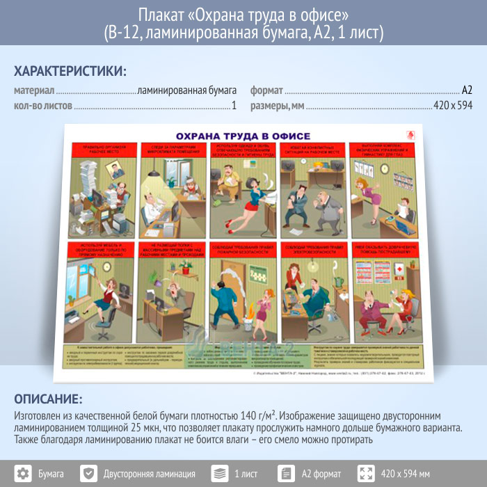 Плакат «Охрана труда в офисе» (В-12, ламинированная бумага, А2, 1 лист) в Череповце купить