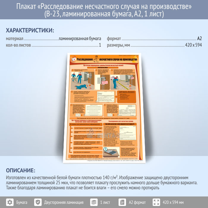 Плакат «Расследование несчастного случая на производстве» (В-23, ламинированная бумага, А2, 1 лист) в Череповце купить