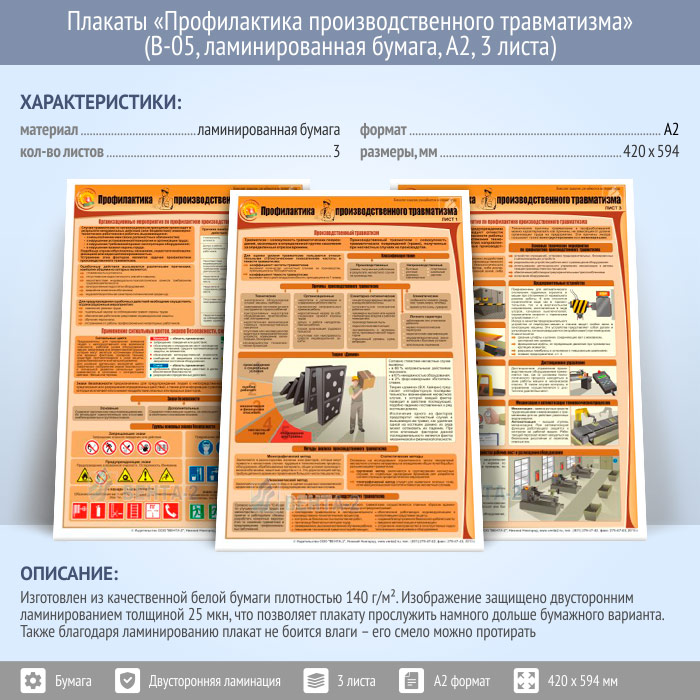Плакаты «Профилактика производственного травматизма» (В-05, ламинированная бумага, А2, 3 листа) в Череповце купить
