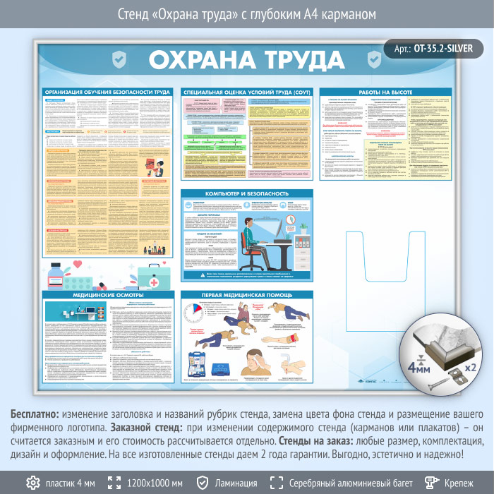 Стенд «Охрана труда» с глубоким А4 карманом (OT-35.2-SILVER) в Череповце купить