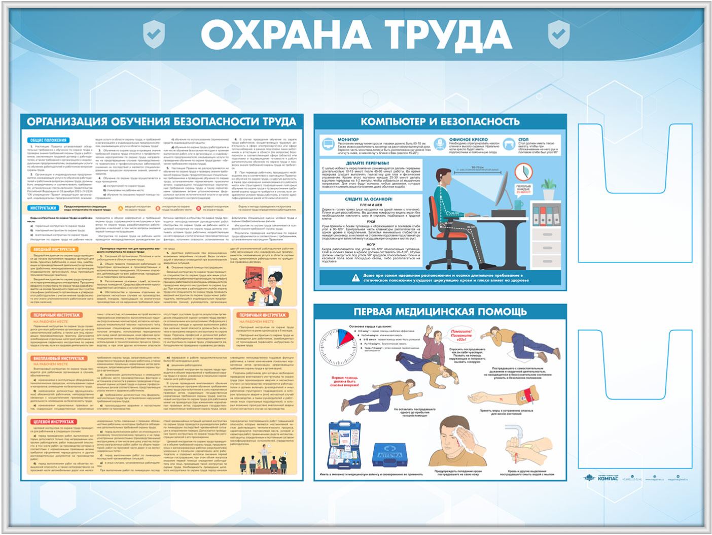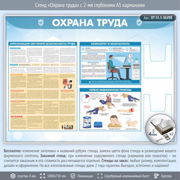 Стенд «Охрана труда» с 2-мя глубокими А5 карманами (OT-35.3-SILVER) в Череповце купить
