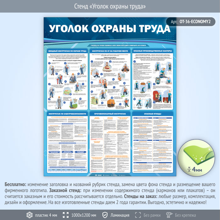 Стенд «Уголок охраны труда» (OT-36-ECONOMY2) в Череповце купить