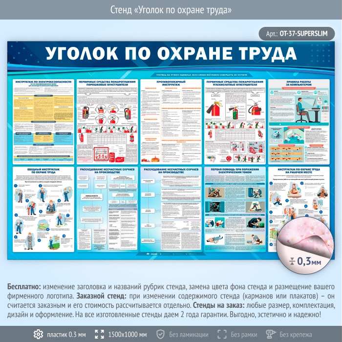 Стенд «Уголок по охране труда» (OT-37-SUPERSLIM) в Череповце купить