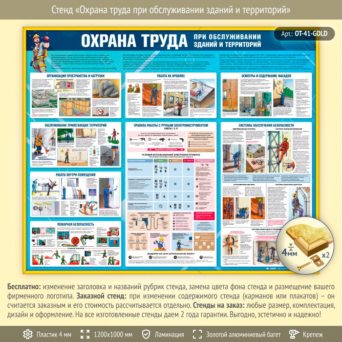 Стенд «Охрана труда при обслуживании зданий и территорий» (OT-41-GOLD) в Череповце купить