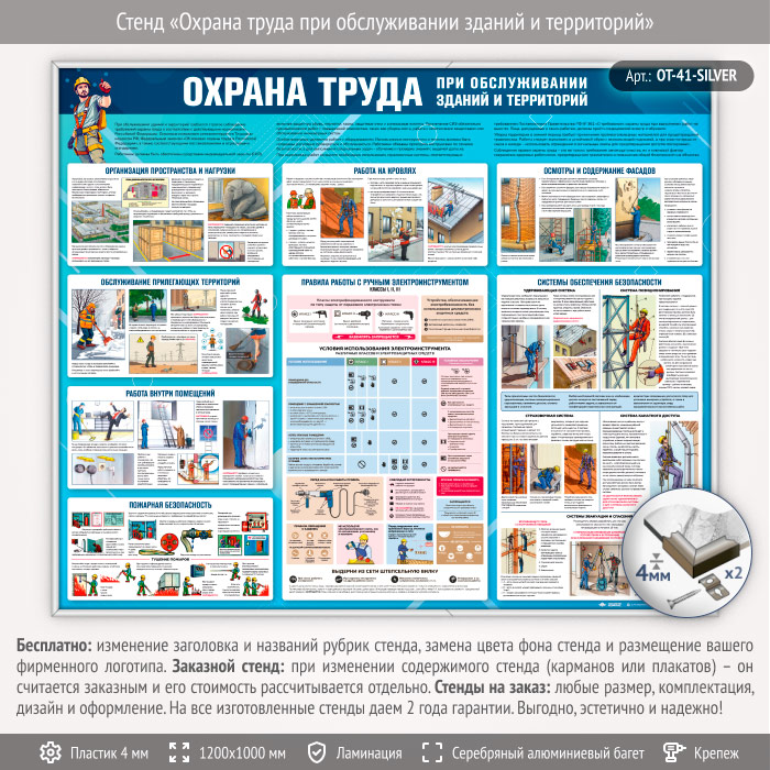 Стенд «Охрана труда при обслуживании зданий и территорий» (OT-41-SILVER) в Череповце купить