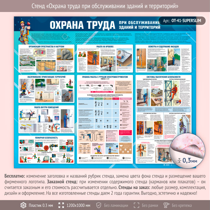 Стенд «Охрана труда при обслуживании зданий и территорий» (OT-41-SUPERSLIM) в Череповце купить