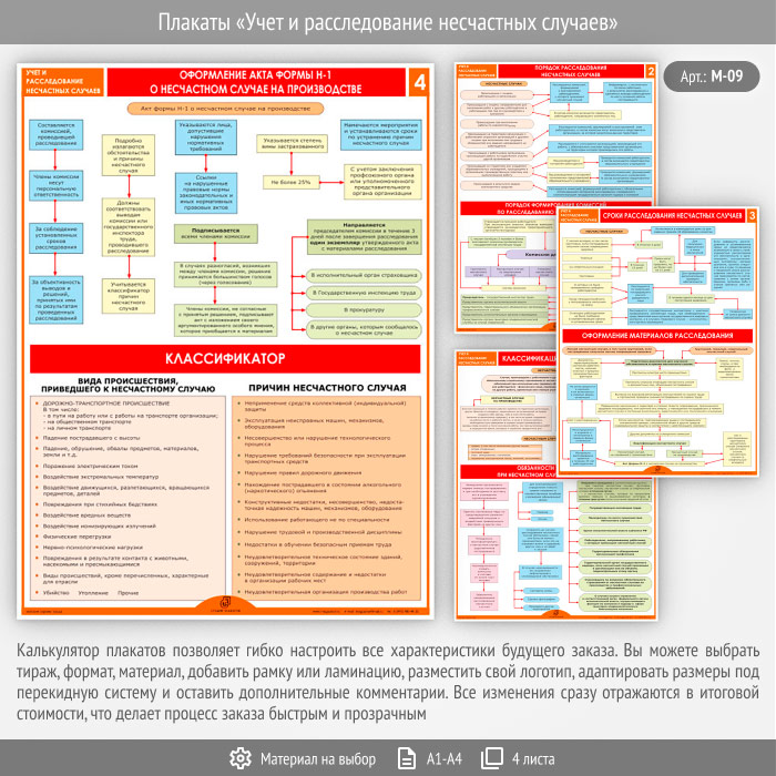 Плакаты «Учет и расследование несчастных случаев» (М-09, 4 листа) в Череповце купить