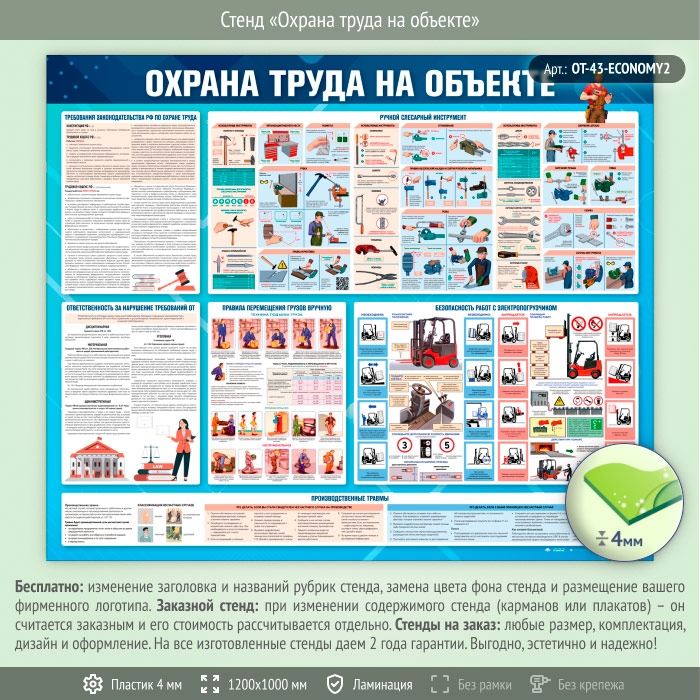 Стенд «Охрана труда на объекте» (OT-43-ECONOMY2) в Череповце купить